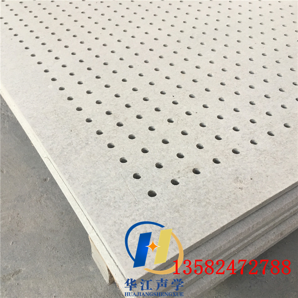 6.固定面板前,先在龙骨两端钉上两钉子,然后根据穿孔吸音石膏板厚度,拉出横竖定位线,以保证墙面整体线条流畅性及平整度。考虑到穿孔石膏板有微量伸缩的可能,钉好面板后,用宽约3㎝的木条压缝,木条用木螺钉或铁钉直接固定在龙骨上,要求螺钉钉入木条表面以下,所留孔眼用石膏腻子补平,用砂纸打磨平整。吸声功能选择:由于吸声穿孔石膏板是利用板面的盲孔、穿通孔及背面的吸声材料,以及具有一定厚度的浮雕花纹来共同达到吸声的,所以孔眼、材料和涂雕等组成的不同,吸声也就不尽相同。对于有一般吸声要求的建筑,可选用装饰石膏吸声板;对于吸声要求较高时,应选择具有良好吸声的吸声穿孔石膏板,也可采用浮雕板与带孔板叠加
